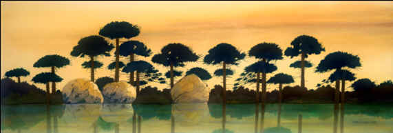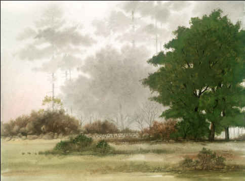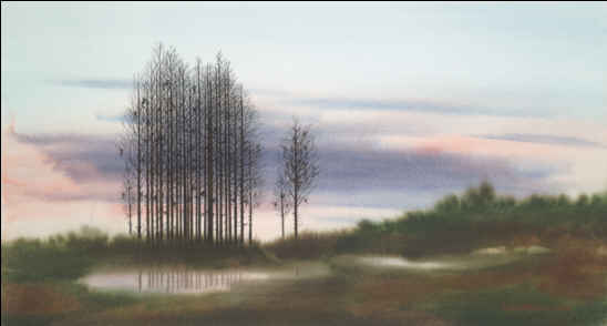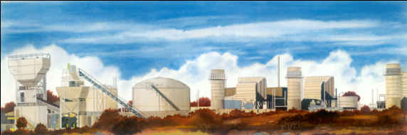 "WINDOW" size 20" X 26" This is a stained glass window of the church at St. Leo College campus. "Window" received the Medal of Honor at the NJ Watercolor Society's annual competitive exhibition. "SIGNS OF THE TIMES" size 12" X 30" This is a thrift / antique store complex, over 100 feet long, now out of business, on Route 50 in Mascotte, Florida. The historical building has 128 signs attached and is majestically silent and fenced in now. "CYPRESS" size 14" X 26" I spotted this scene while driving home on Route 52, Florida. "BALLACHULISH" size 15" x 38" This is a painting of a majestic lake in Scotland's hill country. Its mood is ever changing and captures the eye of photographers world wide. "ARTIST'S HOUSE" size 15" x 21" This tourist attraction is in Key West, Florida - the southernmost city in the USA. "DOOR" size 20” X 26” This door is in St. Augustine, Florida. The watercolor was exhibited at the Audubon Artiststs, Inc. national annual exhibition at the Salamagundi Club in New York City. "NEW DAY" size 22" x 28" An early morning scene visible from the rear of my house. "QUIESCENSE" size 12" x 36" An imaginary peaceful place. (A favorite of my art collectors) "Q2" size 12" x 36" This painting is a companion piece to an earlier watercolor entitled "Quiescence" (included on this site). "POWER TOWERS" size 12.5" x 36.5" Industrial plants have always fascinated me, but not as a watercolor subject until I came upon this interesting group of energy producing buildings.